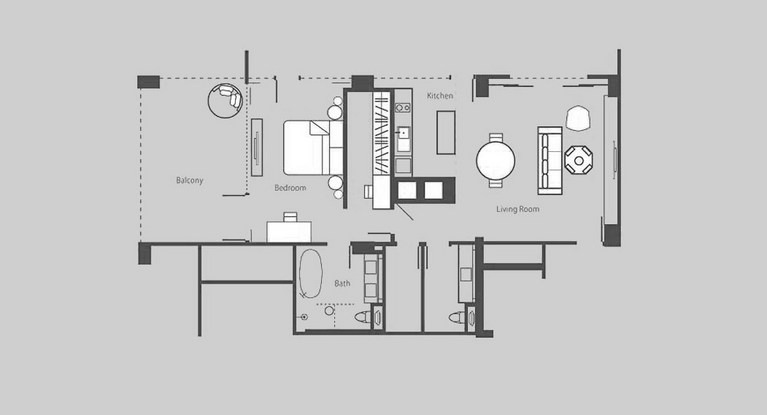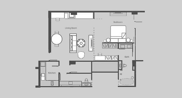 - Fully-furnished serviced residence with integrated living, dining and kitchen areas