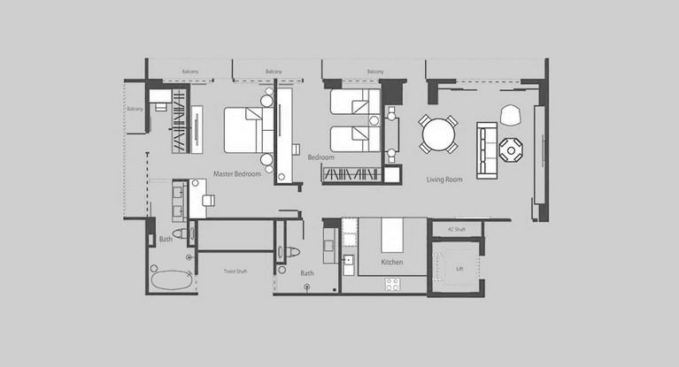 - Fully-furnished serviced residence with integrated living, dining and kitchen areas